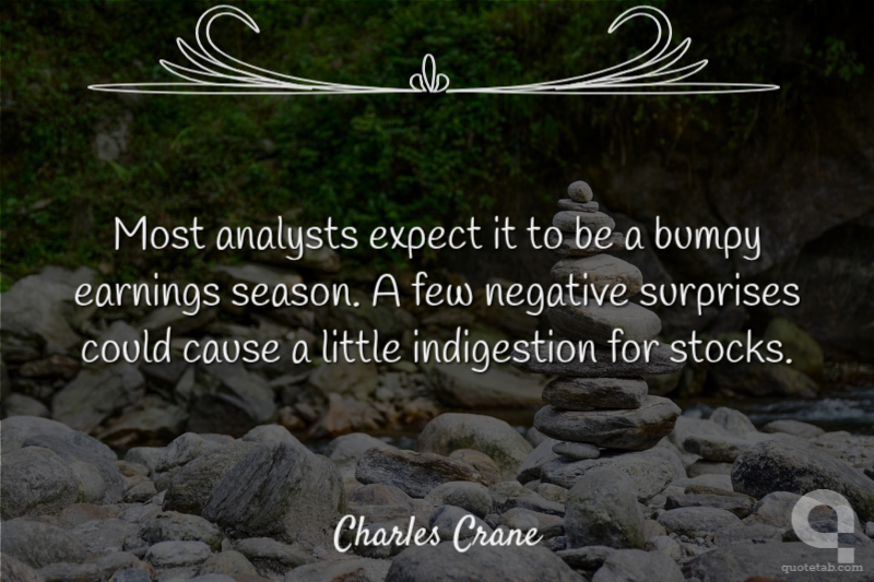 Most analysts expect it to be a bumpy earnings season. A few negative surprises could cause a little indigestion for stocks.