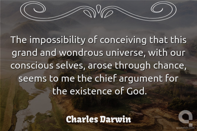 The impossibility of conceiving that this grand and wondrous universe, with our conscious selves, arose through chance, seems to me the chief argument for the existence of God.