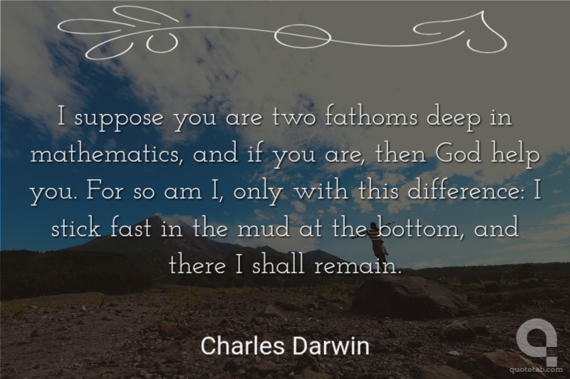 I suppose you are two fathoms deep in mathematics, and if you are, then God help you. For so am I, only with this difference: I stick fast in the mud at the bottom, and there I shall remain.