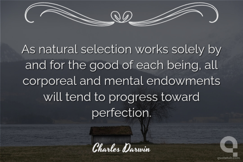 As natural selection works solely by and for the good of each being, all corporeal and mental endowments will tend to progress toward perfection.