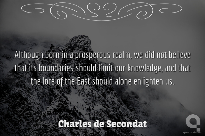 Although born in a prosperous realm, we did not believe that its boundaries should limit our knowledge, and that the lore of the East should alone enlighten us.