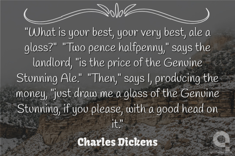 "What is your best, your very best, ale a glass?" "Two pence halfpenny," says the landlord, "is the price of the Genuine Stunning Ale." "Then," says I, producing the money, "just draw me a glass of the Genuine Stunning, if you please, with a good head on it."