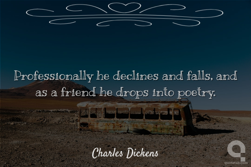 Professionally he declines and falls, and as a friend he drops into poetry.
