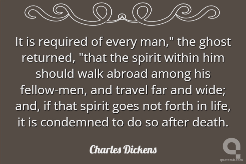 It is required of every man," the ghost returned, "that the spirit within him should walk abroad among his fellow-men, and travel far and wide; and, if that spirit goes not forth in life, it is condemned to do so after death.