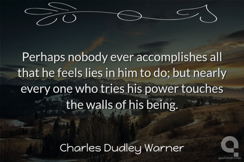 Perhaps nobody ever accomplishes all that he feels lies in him to do; but nearly every one who tries his power touches the walls of his being.