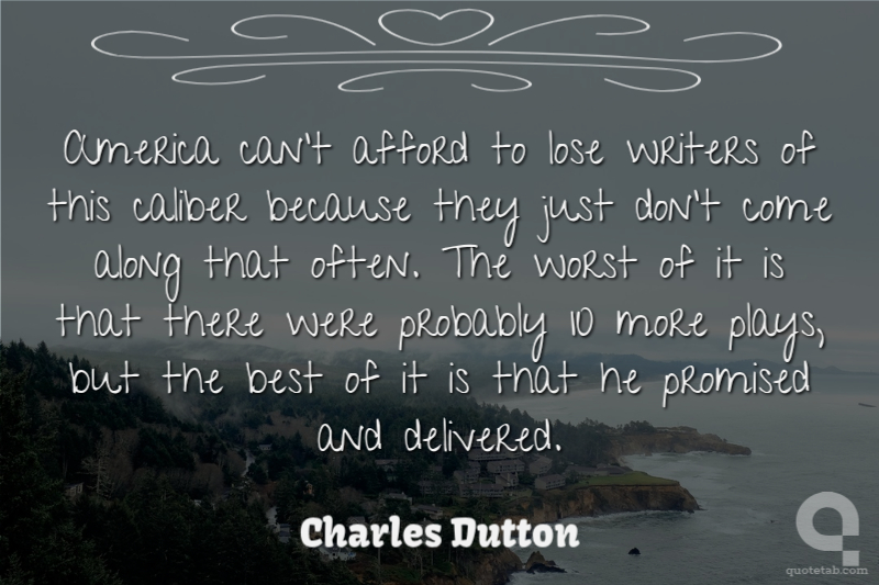 America can't afford to lose writers of this caliber because they just don't come along that often. The worst of it is that there were probably 10 more plays, but the best of it is that he promised and delivered.