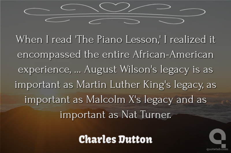 When I read 'The Piano Lesson,' I realized it encompassed the entire African-American experience, ... August Wilson's legacy is as important as Martin Luther King's legacy, as important as Malcolm X's legacy and as important as Nat Turner.