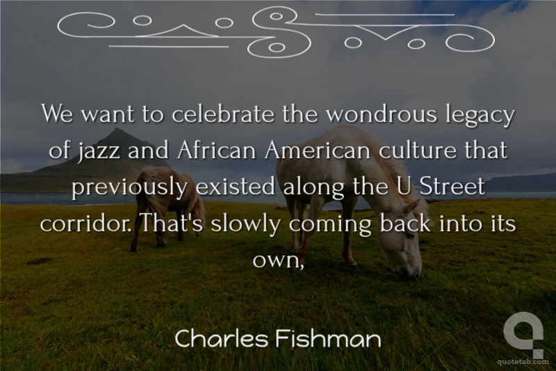 We want to celebrate the wondrous legacy of jazz and African American culture that previously existed along the U Street corridor. That's slowly coming back into its own,