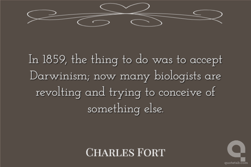 In 1859, the thing to do was to accept Darwinism; now many biologists are revolting and trying to conceive of something else.