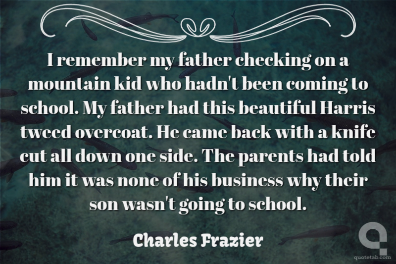 I remember my father checking on a mountain kid who hadn't been coming to school. My father had this beautiful Harris tweed overcoat. He came back with a knife cut all down one side. The parents had told him it was none of his business why their son wasn't going to school.