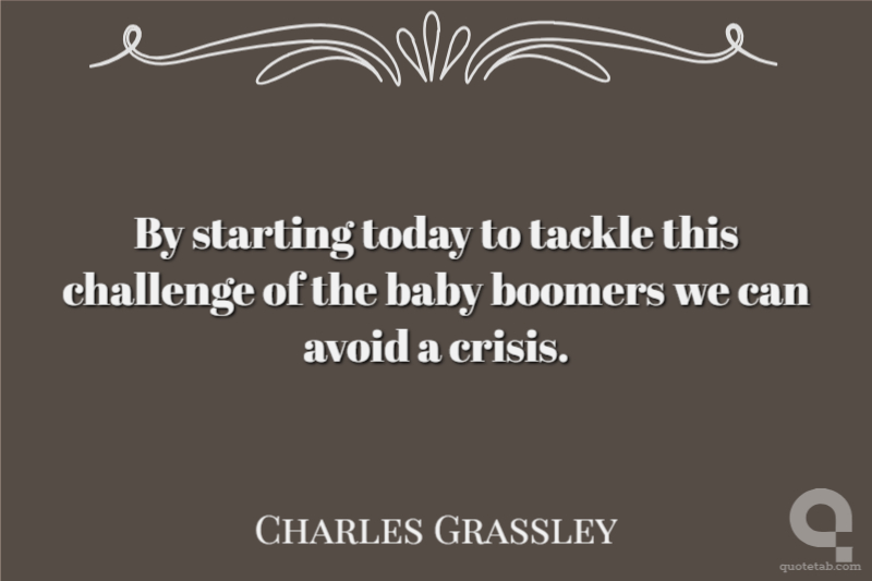 By starting today to tackle this challenge of the baby boomers we can avoid a crisis.