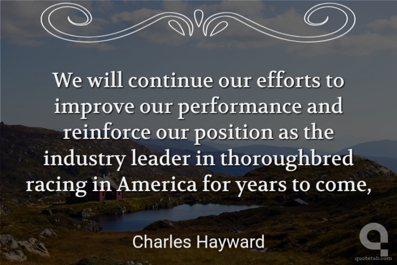 We will continue our efforts to improve our performance and reinforce our position as the industry leader in thoroughbred racing in America for years to come,