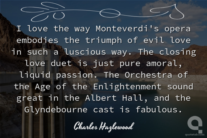 I love the way Monteverdi's opera embodies the triumph of evil love in such a luscious way. The closing love duet is just pure amoral, liquid passion. The Orchestra of the Age of the Enlightenment sound great in the Albert Hall, and the Glyndebourne cast is fabulous.
