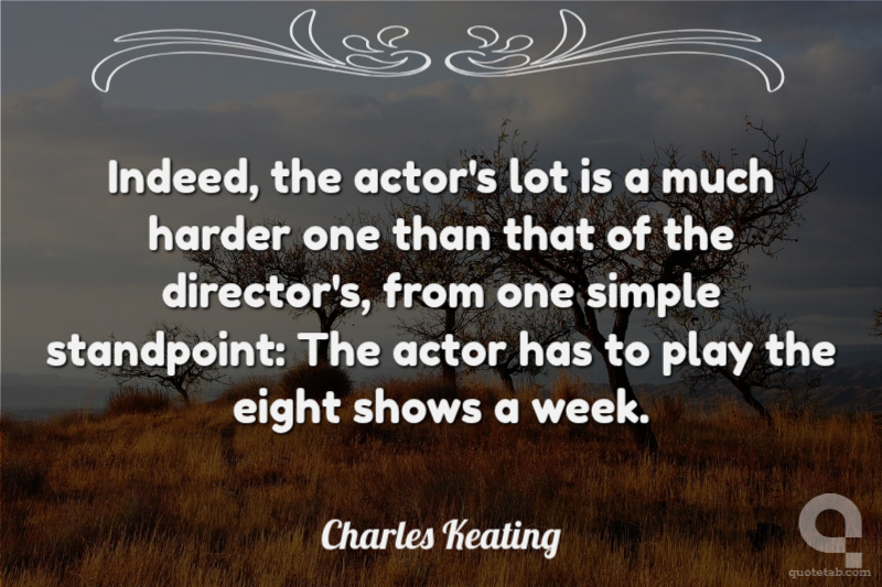 Indeed, the actor's lot is a much harder one than that of the director's, from one simple standpoint: The actor has to play the eight shows a week.