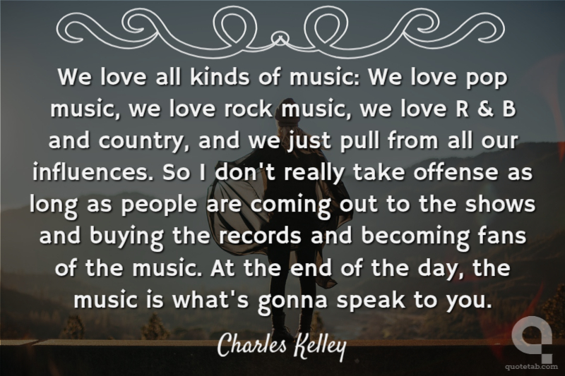 We love all kinds of music: We love pop music, we love rock music, we love R & B and country, and we just pull from all our influences. So I don't really take offense as long as people are coming out to the shows and buying the records and becoming fans of the music. At the end of the day, the music is what's gonna speak to you.