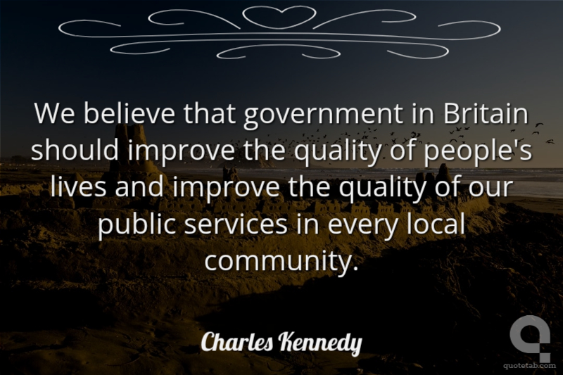 We believe that government in Britain should improve the quality of people's lives and improve the quality of our public services in every local community.