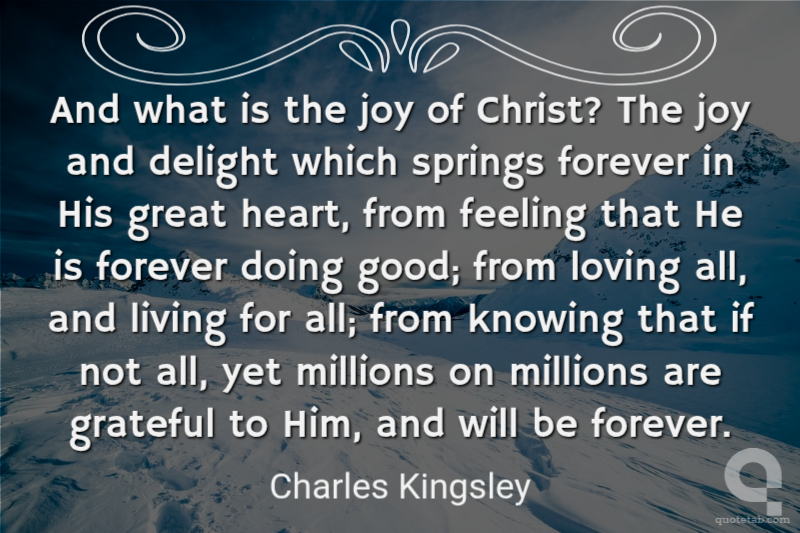 And what is the joy of Christ? The joy and delight which springs forever in His great heart, from feeling that He is forever doing good; from loving all, and living for all; from knowing that if not all, yet millions on millions are grateful to Him, and will be forever.