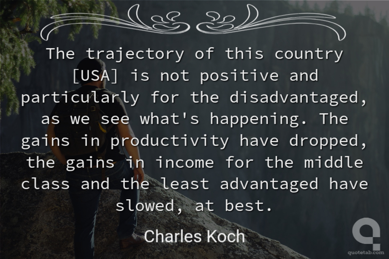 The trajectory of this country [USA] is not positive and particularly for the disadvantaged, as we see what's happening. The gains in productivity have dropped, the gains in income for the middle class and the least advantaged have slowed, at best.