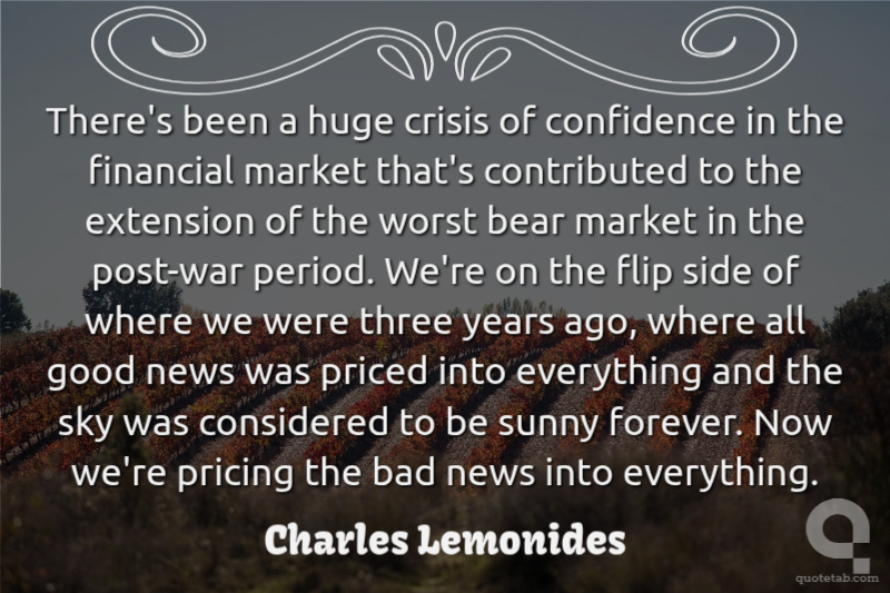 There's been a huge crisis of confidence in the financial market that's contributed to the extension of the worst bear market in the post-war period. We're on the flip side of where we were three years ago, where all good news was priced into everything and the sky was considered to be sunny forever. Now we're pricing the bad news into everything.