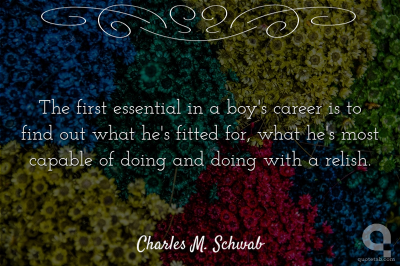 The first essential in a boy's career is to find out what he's fitted for, what he's most capable of doing and doing with a relish.
