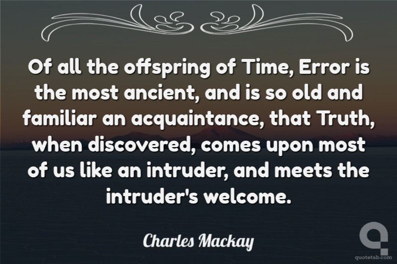 Of all the offspring of Time, Error is the most ancient, and is so old and familiar an acquaintance, that Truth, when discovered, comes upon most of us like an intruder, and meets the intruder's welcome.
