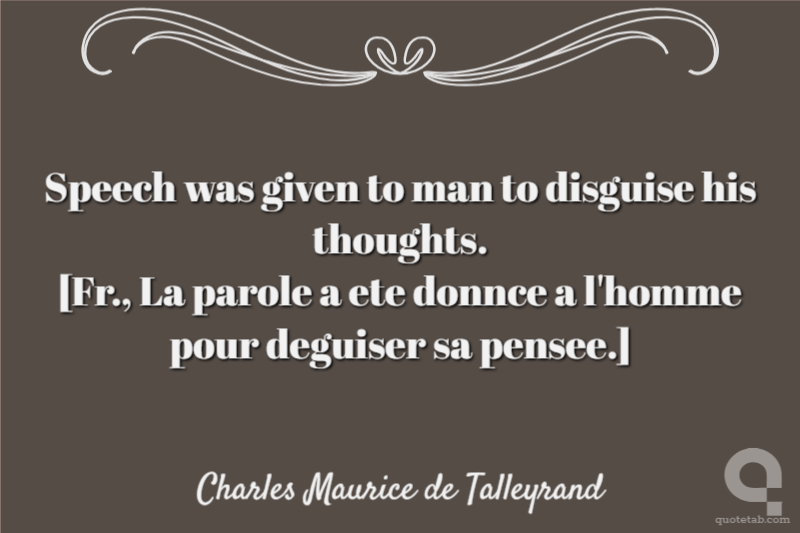 Speech was given to man to disguise his thoughts. [Fr., La parole a ete donnce a l'homme pour deguiser sa pensee.]