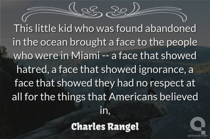 This little kid who was found abandoned in the ocean brought a face to the people who were in Miami -- a face that showed hatred, a face that showed ignorance, a face that showed they had no respect at all for the things that Americans believed in,