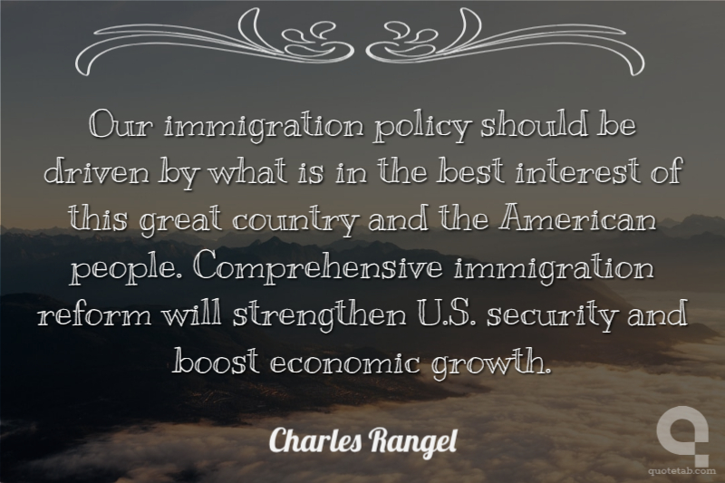 Our immigration policy should be driven by what is in the best interest of this great country and the American people. Comprehensive immigration reform will strengthen U.S. security and boost economic growth.