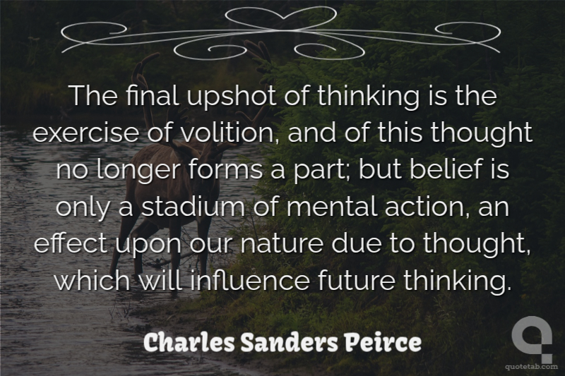 The final upshot of thinking is the exercise of volition, and of this thought no longer forms a part; but belief is only a stadium of mental action, an effect upon our nature due to thought, which will influence future thinking.