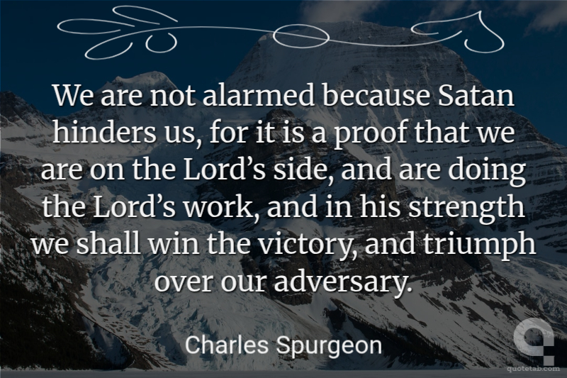 We are not alarmed because Satan hinders us, for it is a proof that we are on the Lord’s side, and are doing the Lord’s work, and in his strength we shall win the victory, and triumph over our adversary.