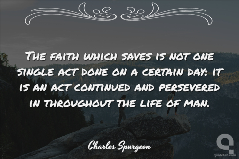The faith which saves is not one single act done on a certain day: it is an act continued and persevered in throughout the life of man.