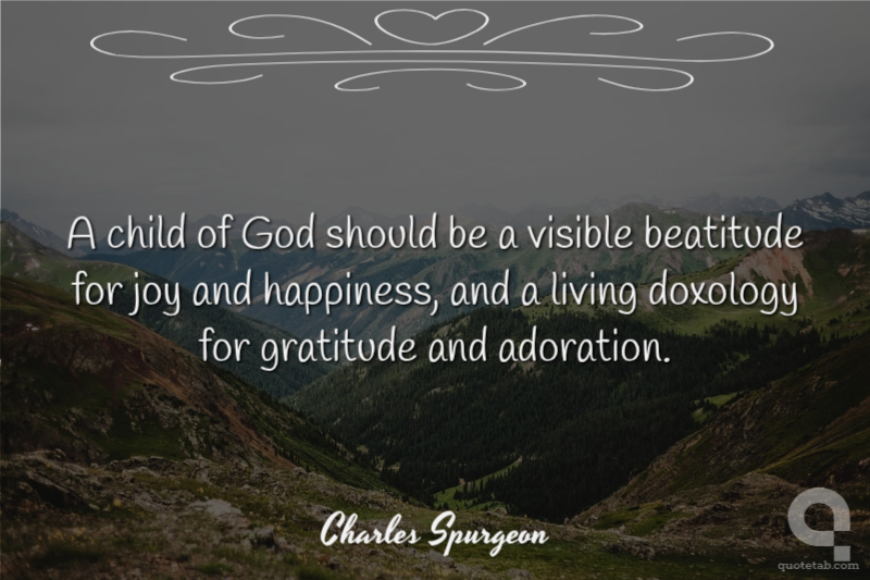 A child of God should be a visible beatitude for joy and happiness, and a living doxology for gratitude and adoration.