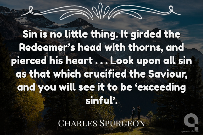 Sin is no little thing. It girded the Redeemer’s head with thorns, and pierced his heart . . . Look upon all sin as that which crucified the Saviour, and you will see it to be ‘exceeding sinful’.