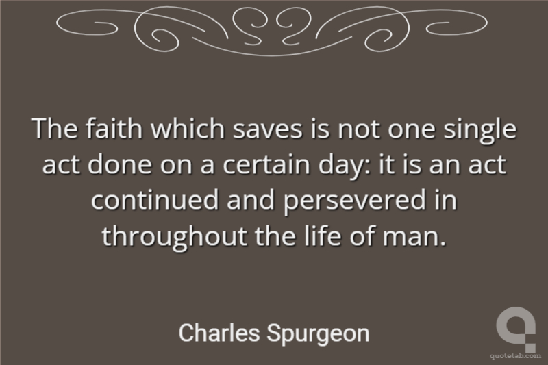 The faith which saves is not one single act done on a certain day: it is an act continued and persevered in throughout the life of man.