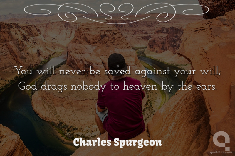 You will never be saved against your will; God drags nobody to heaven by the ears.