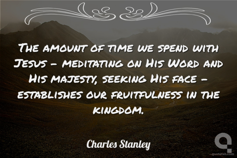 The amount of time we spend with Jesus - meditating on His Word and His majesty, seeking His face - establishes our fruitfulness in the kingdom.