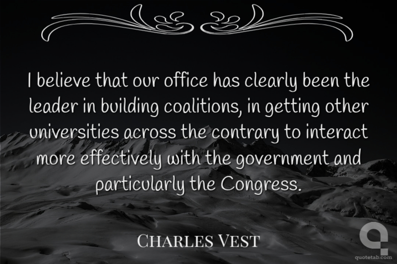 I believe that our office has clearly been the leader in building coalitions, in getting other universities across the contrary to interact more effectively with the government and particularly the Congress.