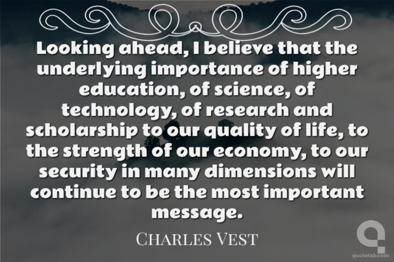 Looking ahead, I believe that the underlying importance of higher education, of science, of technology, of research and scholarship to our quality of life, to the strength of our economy, to our security in many dimensions will continue to be the most important message.
