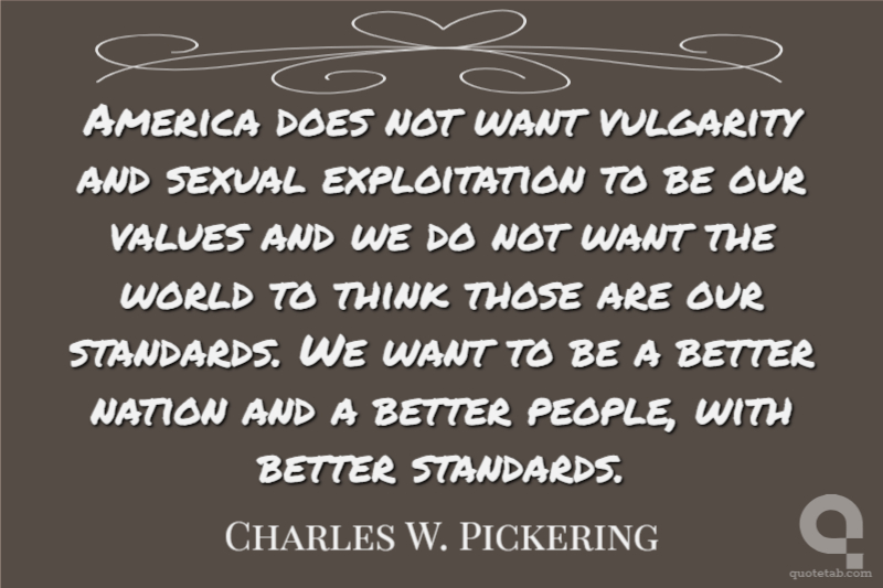 America does not want vulgarity and sexual exploitation to be our values and we do not want the world to think those are our standards. We want to be a better nation and a better people, with better standards.