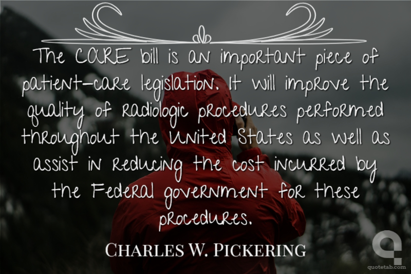 The CARE bill is an important piece of patient-care legislation. It will improve the quality of radiologic procedures performed throughout the United States as well as assist in reducing the cost incurred by the Federal government for these procedures.