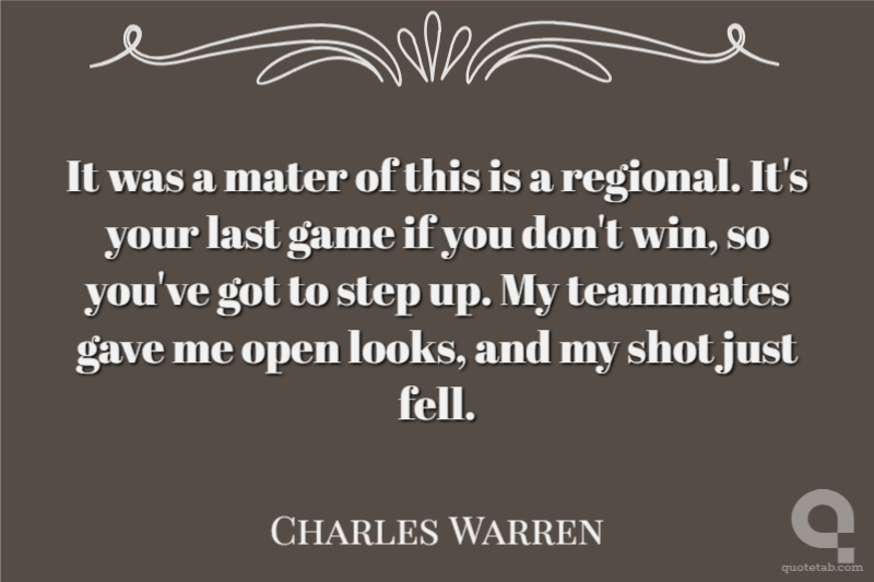 It was a mater of this is a regional. It's your last game if you don't win, so you've got to step up. My teammates gave me open looks, and my shot just fell.