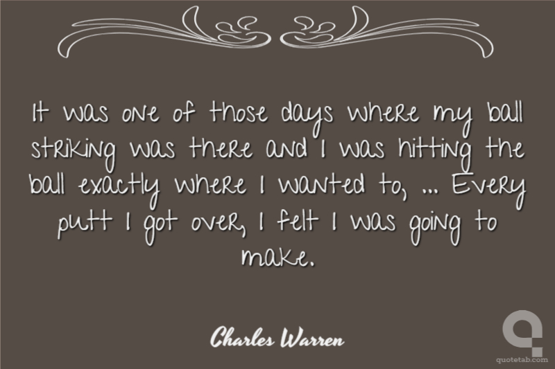 It was one of those days, ... I was hitting the ball exactly where I wanted to, the right distance and everything. Every putt I got over I felt like I was going to make.