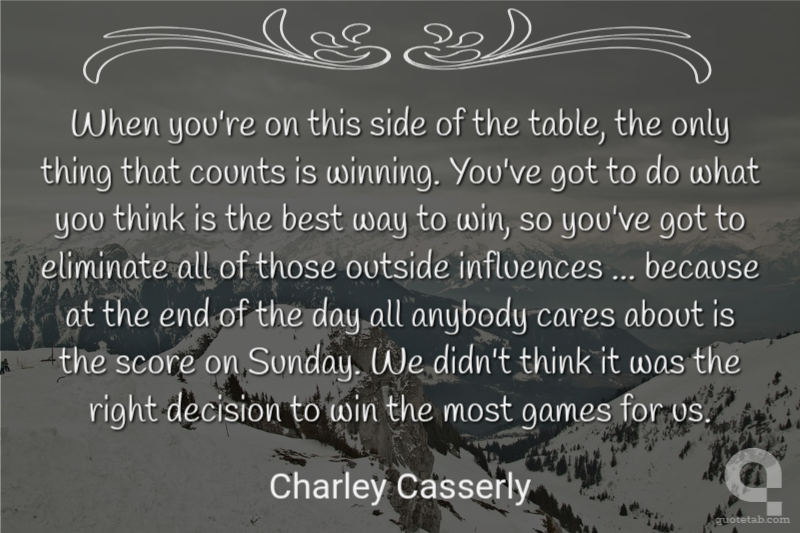 When you're on this side of the table, the only thing that counts is winning. You've got to do what you think is the best way to win, so you've got to eliminate all of those outside influences ... because at the end of the day all anybody cares about is the score on Sunday. We didn't think it was the right decision to win the most games for us.