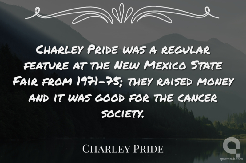 Charley Pride was a regular feature at the New Mexico State Fair from 1971-75; they raised money and it was good for the cancer society.