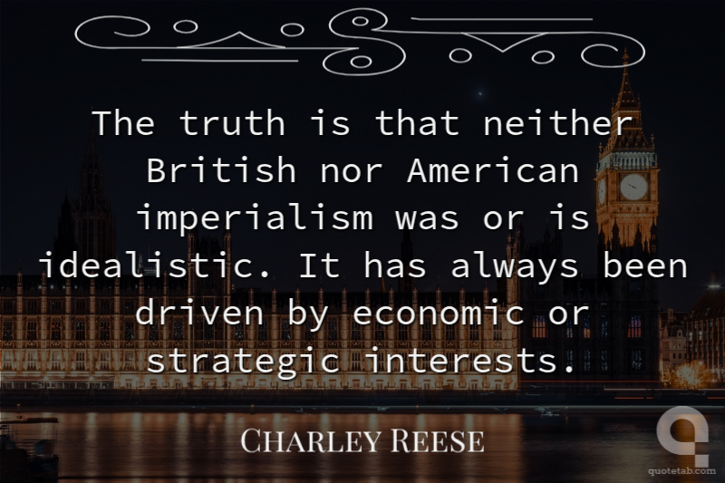 The truth is that neither British nor American imperialism was or is idealistic. It has always been driven by economic or strategic interests.
