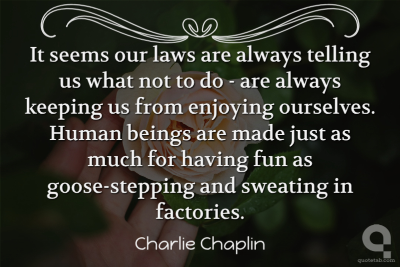 It seems our laws are always telling us what not to do - are always keeping us from enjoying ourselves. Human beings are made just as much for having fun as goose-stepping and sweating in factories.