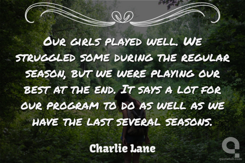 Our girls played well. We struggled some during the regular season, but we were playing our best at the end. It says a lot for our program to do as well as we have the last several seasons.