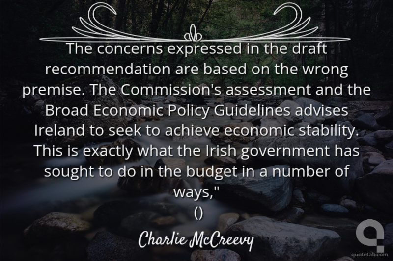 The concerns expressed in the draft recommendation are based on the wrong premise. The Commission's assessment and the Broad Economic Policy Guidelines advises Ireland to seek to achieve economic stability. This is exactly what the Irish government has sought to do in the budget in a number of ways," ()