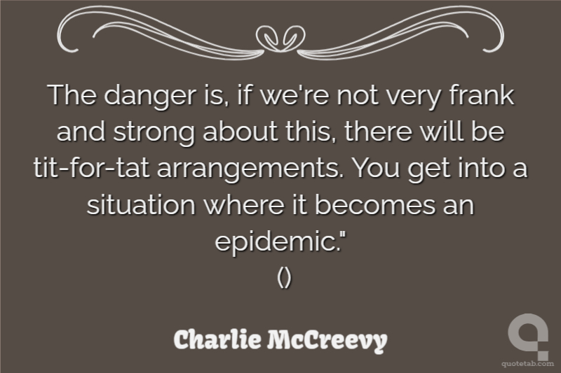 The danger is, if we're not very frank and strong about this, there will be tit-for-tat arrangements. You get into a situation where it becomes an epidemic." ()