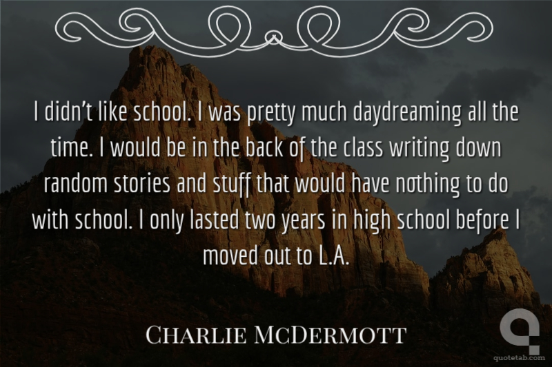 I didn't like school. I was pretty much daydreaming all the time. I would be in the back of the class writing down random stories and stuff that would have nothing to do with school. I only lasted two years in high school before I moved out to L.A.